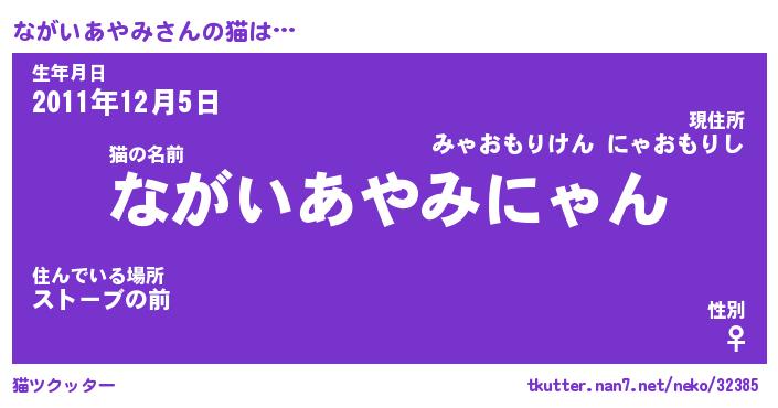 | 欧米人風あだ名 | 『マイケルながいあやみ』 |