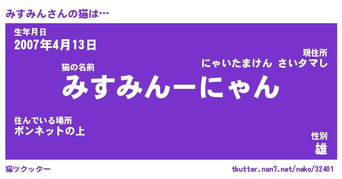 | 意味不明あだ名 | 『ペロリンみすみん』『永久保存みすみん』 |