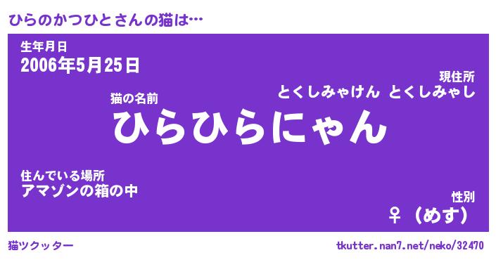 | ツイッター | ひらのかつひとさんのツイッターID『katatsumuri_man』 |