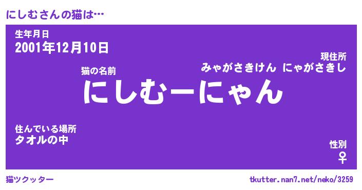 | ポケモン風あだ名 | 『ニシチュウ』『ニシムダネ』 |