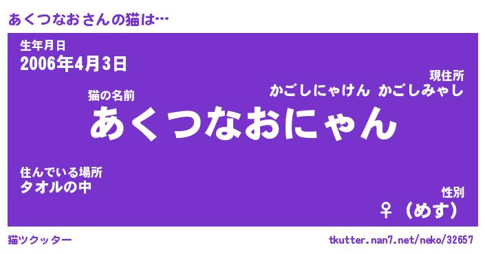 | ファンタジー風あだ名 | 『アクフェル』『エターナルアクツナオー』 |