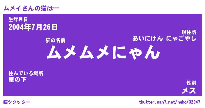 | ポケモン風あだ名 | 『ムメチュウ』『ムメイダネ』 |
