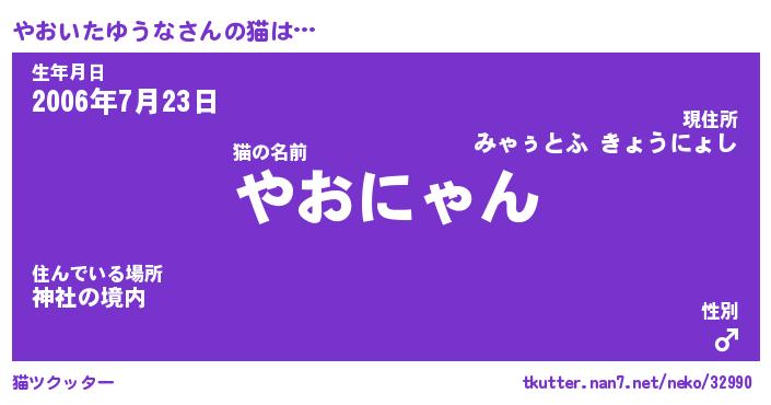 | 2回繰り返すあだ名 | 『やおやお』『ややおお』『ぬらぬら』 |