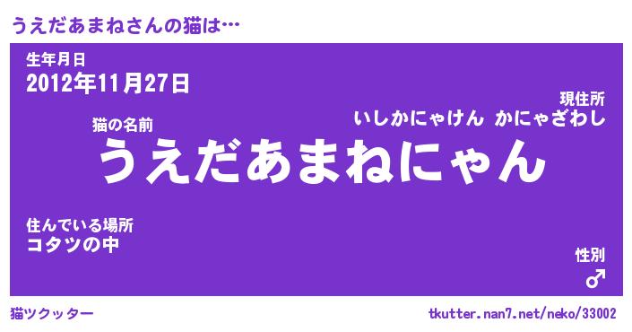 | ポケモン風あだ名 | 『ウエチュウ』『ウエダダネ』 |
