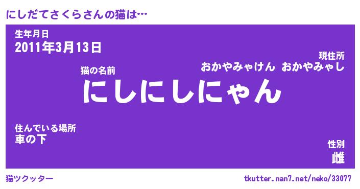 | 2回繰り返すあだ名 | 『にしにし』『ににしし』『うずうず』 |