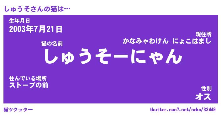 | 意味不明あだ名 | 『ペロリンしゅうそ』『永久保存しゅうそ』 |