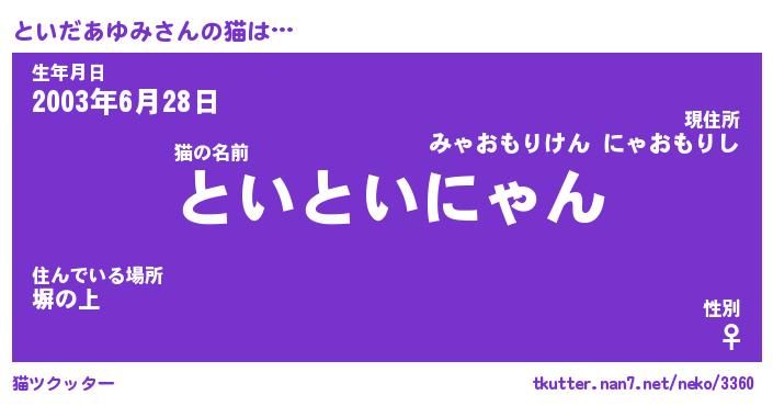 | ヘコむあだ名 | 『といにゅー』『牛乳』『といぷりん』 |