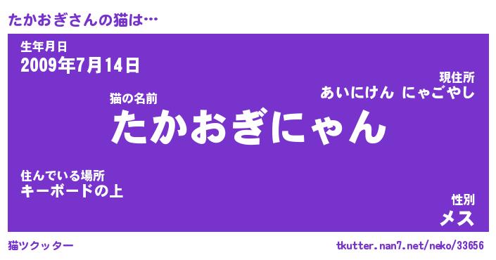 | ポケモン風あだ名 | 『タカチュウ』『タカオダネ』 |