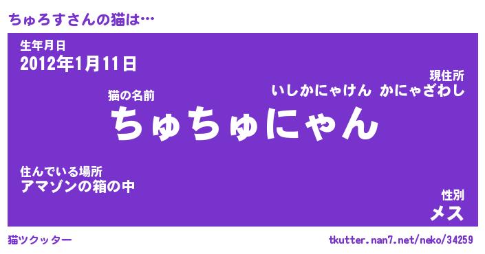 | 意味不明あだ名 | 『ペロリンちゅろす』『永久保存ちゅろす』 |