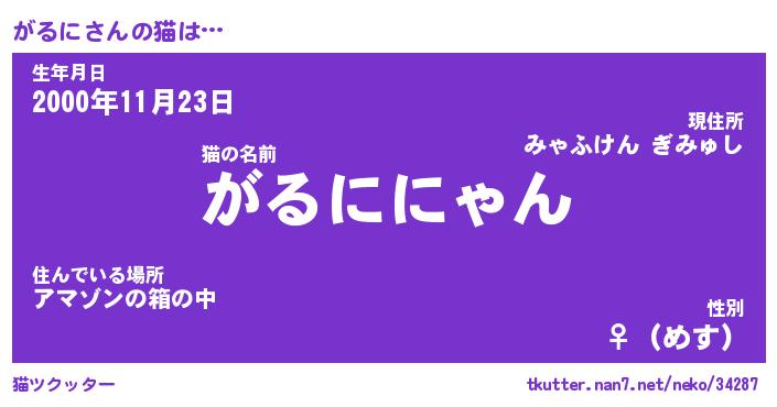 | 2回繰り返すあだ名 | 『がるがる』『ががるる』『うねうね』 |