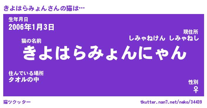 | 男性向けラノベタイトル風あだ名 | 『きよはらみょんの憂鬱』 |