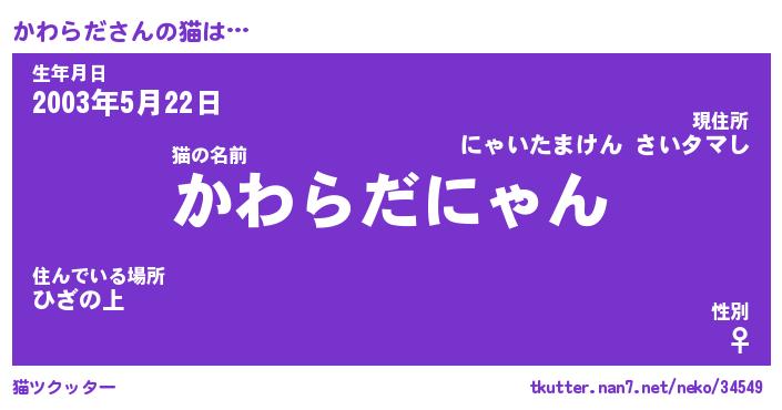 | 意味不明あだ名 | 『ペロリンかわらだ』『永久保存かわらだ』 |