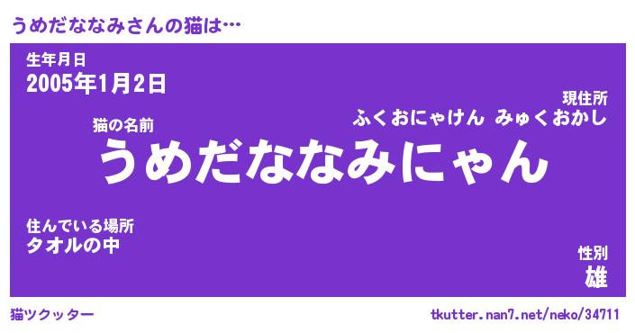 | ポケモン風あだ名 | 『ウメチュウ』『ウメダダネ』 |