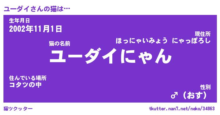 | ポケモン風あだ名 | 『ユーチュウ』『ユーダダネ』 |