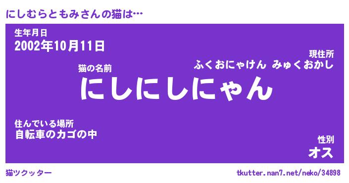 | ポケモン風あだ名 | 『ニシチュウ』『ニシムダネ』 |