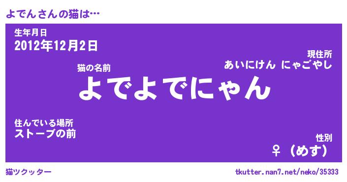 | ポケモン風あだ名 | 『ヨデチュウ』『ヨデンダネ』 |