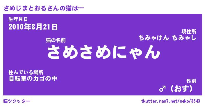 | ヘコむあだ名 | 『さめにー』『豆乳』『さめっちょ』 |