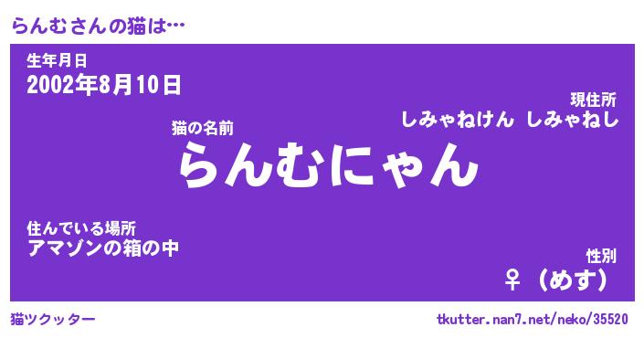 | 男性向けラノベタイトル風あだ名 | 『らんむの憂鬱』 |