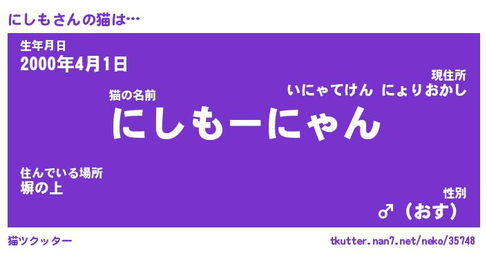 | ファンタジー風あだ名 | 『ニシフェル』『エターナルニシモー』 |