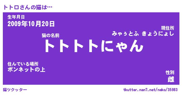 | ポケモン風あだ名 | 『トトチュウ』『トトロダネ』 |