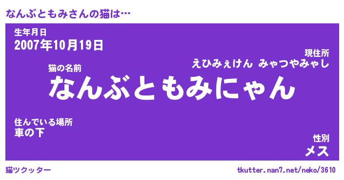 | ポケモン風あだ名 | 『ナンチュウ』『ナンブダネ』 |