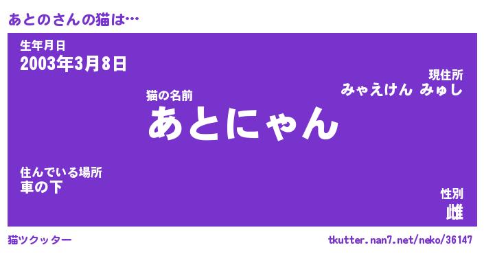 | 生年月日? …「くろねこ」 | 8月01日 10:16 |