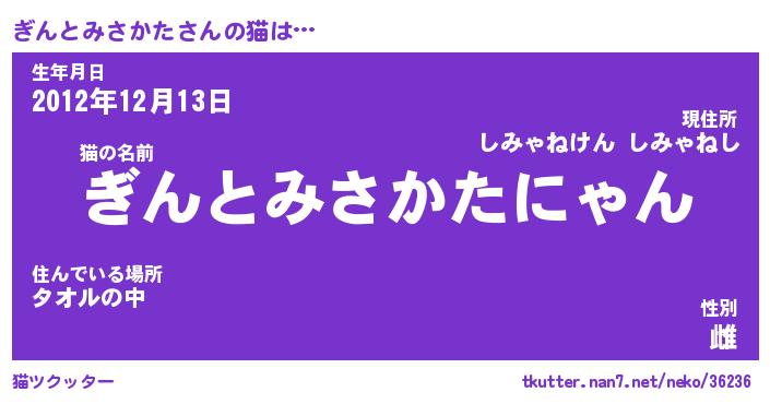 | ポケモン風あだ名 | 『ギンチュウ』『ギントダネ』 |