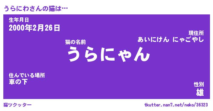 | ツイッター | うらにわさんのツイッターID『masyumaro_kun』 |