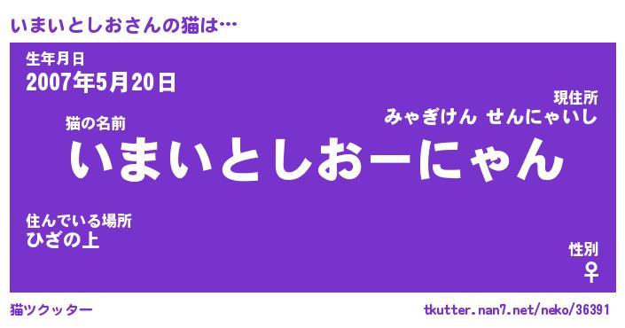 | ポケモン風あだ名 | 『イマチュウ』『イマイダネ』 |