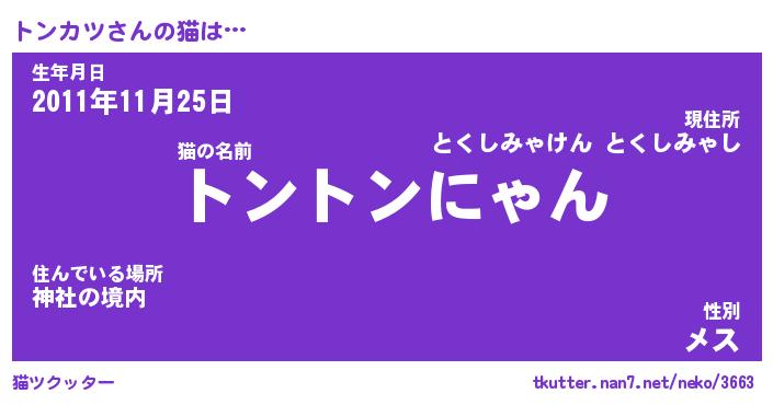 | ツイッター | トンカツさんのツイッターID『namakemono_idle』 |