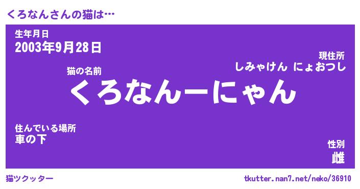 | 意味不明あだ名 | 『ペロリンくろなん』『永久保存くろなん』 |