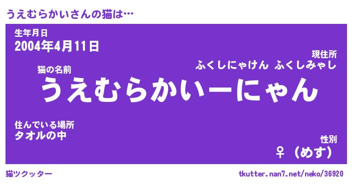 | ポケモン風あだ名 | 『ウエチュウ』『ウエムダネ』 |