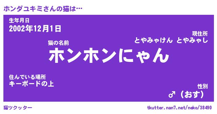 | ポケモン風あだ名 | 『ホンチュウ』『ホンダダネ』 |