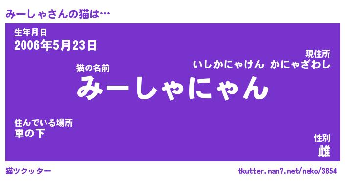 | 男性向けラノベタイトル風あだ名 | 『みーしゃの憂鬱』 |