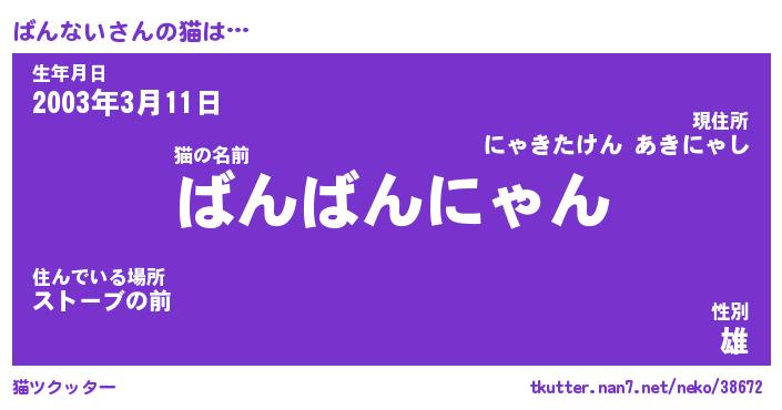 | ポケモン風あだ名 | 『バンチュウ』『バンナダネ』 |