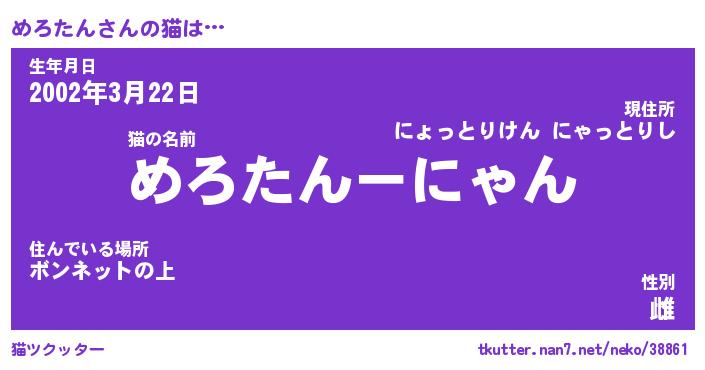 | 意味不明あだ名 | 『ペロリンめろたん』『永久保存めろたん』 |