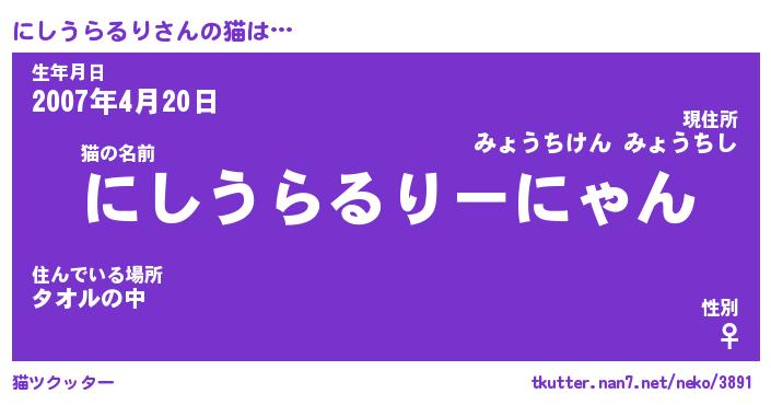 | 肩書あだ名 | 『にしうらるり社長令嬢』 |