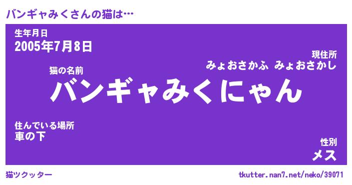 | 欧米人風あだ名 | 『マイケルバンギャみく』 |
