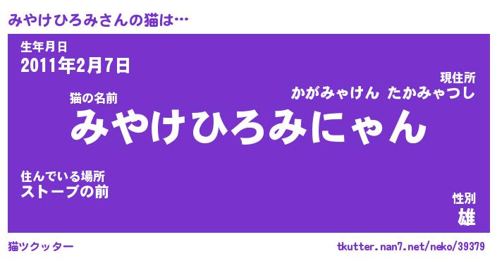 | ポケモン風あだ名 | 『ミヤチュウ』『ミヤケダネ』 |