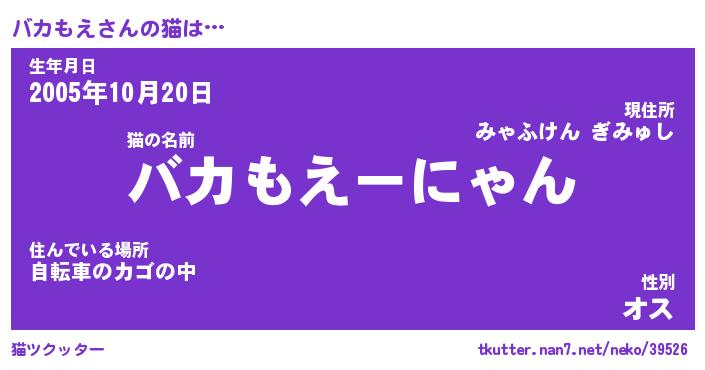 | ツイッター | バカもえさんのツイッターID『namakemono_kun』 |