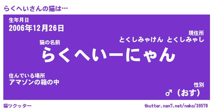 | 意味不明あだ名 | 『ペロリンらくへい』『永久保存らくへい』 |