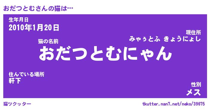 | 男性向けラノベタイトル風あだ名 | 『おだつとむの憂鬱』 |