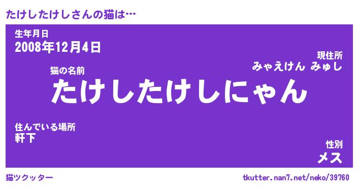 | ポケモン風あだ名 | 『タケチュウ』『タケシダネ』 |