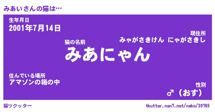 | ヘコむあだ名 | 『みあにゅー』『つくし』『みあっ子』 |