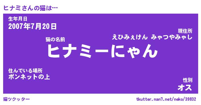 | 生年月日? …「くろねこ」 | 8月01日 10:16 |