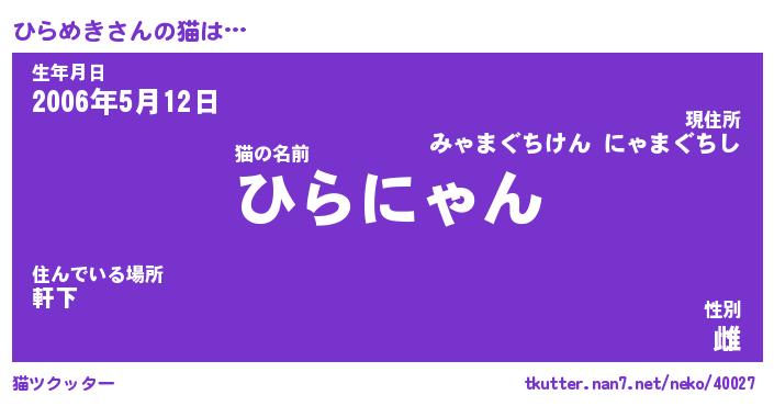 | 生年月日? …「くろねこ」 | 8月01日 10:16 |