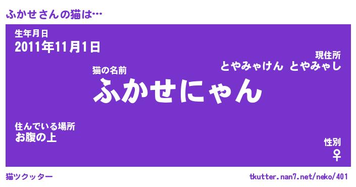 | ポケモン風あだ名 | 『フカチュウ』『フカセダネ』 |
