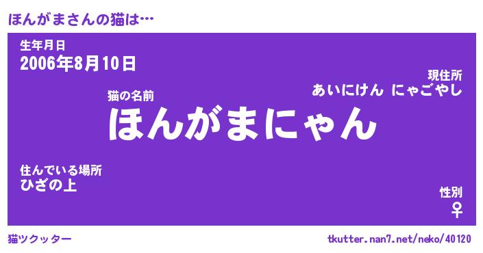 | 意味不明あだ名 | 『ペロリンほんがま』『永久保存ほんがま』 |