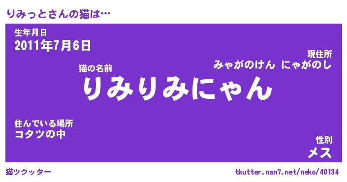 | ツイッター | りみっとさんのツイッターID『dendenmushi_nyan』 |