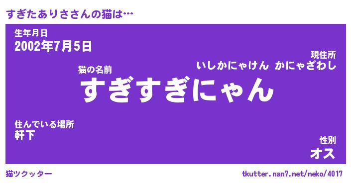 | ポケモン風あだ名 | 『スギチュウ』『スギタダネ』 |